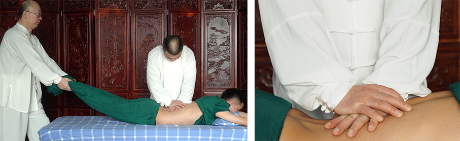 该法是高频低幅震颤手法。患者俯卧,助手轻牵下肢使胸腰椎微拔伸,术者双手按压目标椎体,快速震颤(8-10Hz),持续10-15秒。要求术者双手稳定,震颤幅度小、频率快,力透椎体,术前确保患者耐受力,避免过度刺激。能松解椎间粘连,缓解椎间盘压力。常用于胸腰椎椎间盘突出和小关节紊乱等。