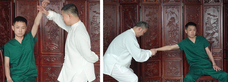 该法是滑利关节与松解粘连的常用手法。患者坐位,术者站于患侧,先牵拉患肢手腕部,再以腕部为支点顺/逆时针旋转。要求力度由轻渐重,幅度从小到大,全程与患者沟通,施术前疏通患肢经络,增强治疗效果。能恢复肩关节活动度,松解软组织粘连。常用于肩周炎等肩关节功能障碍。